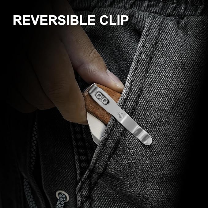 - Mkuruti Wood Handle: The mkuruti wood handle of edc pocket knife provides timeless, exotic look with natural touch feeling.