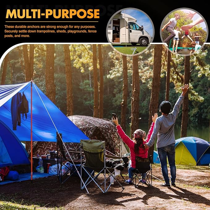 - Wide Range of Applications: these swing set anchors are practical and classical tools, which can be widely applied for camping tents, trampolines, swings, playgrounds, slides, canopies, temporary shelters, automobile ports, sheds, pet rooms, trees, fences and fence posts, vertical hammocks, and more