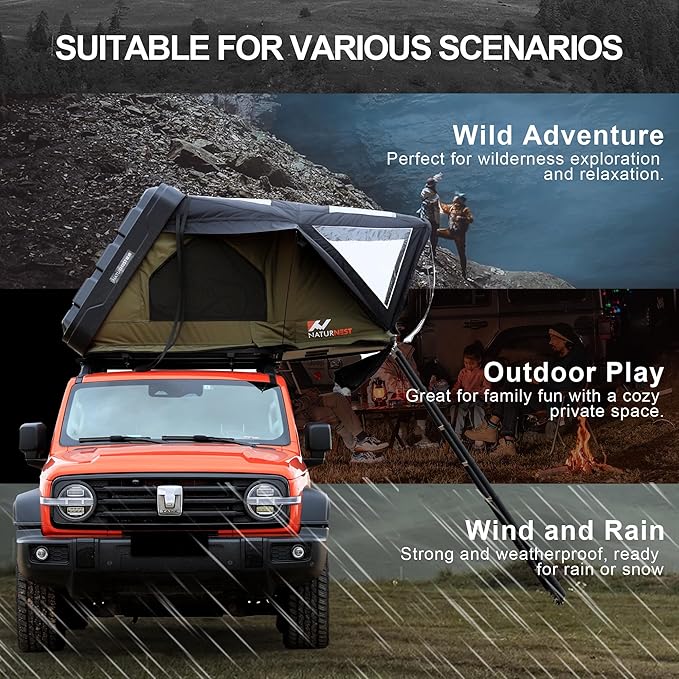 Naturnest Sirius1plus Hardshell Rooftop Tent with 2 Luggage Racks and Skyview Window, Aluminium Roof Top Tent with 3-Color LED Lights and Internal USB Plug for Jeeps, SUVs and Trucks, 2-3 Person
