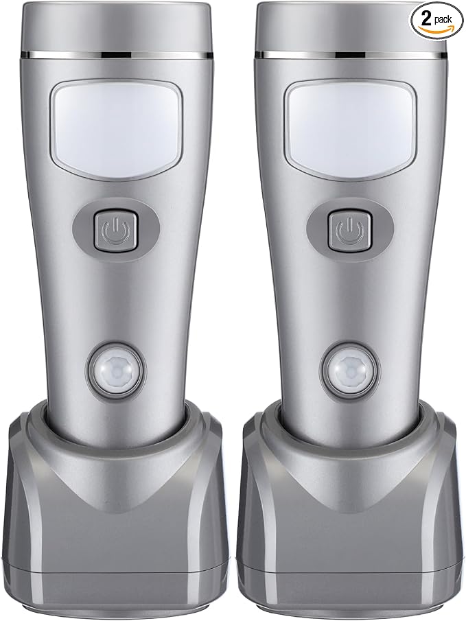 - 4 In 1 Function: rechargeable flashlights are 4 in 1 function; This light can be applied as LED motion sensor nightlight, emergency light, flashlight and rechargeable torch; Plug in the socket and you can use it as a night light; But if you just want to use it as a flashlight, you just need to turn on the button on the top of the light; It is especially handy for use during outdoor camping, nighttime events