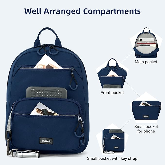 Carry On Travel Backpack For Men Women, 13 Inch Small Mini Work Bag Personal Item Backpacks, Camping Back Pack Lightweight Hiking Daypack For Office Nurse Commuter (Navy Blue)