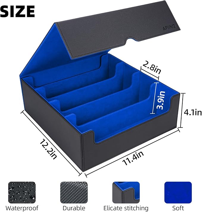 - Premium & Durable Quality: Our card collection box features a thickened design for a sturdier build, providing enhanced protection for your cards.Crafted with carefully selected premium plush material, the softer liner inside provides a gentle and refined cushion, protecting your cherished cards with care.(Fits sleeved cards but not toploaders.)