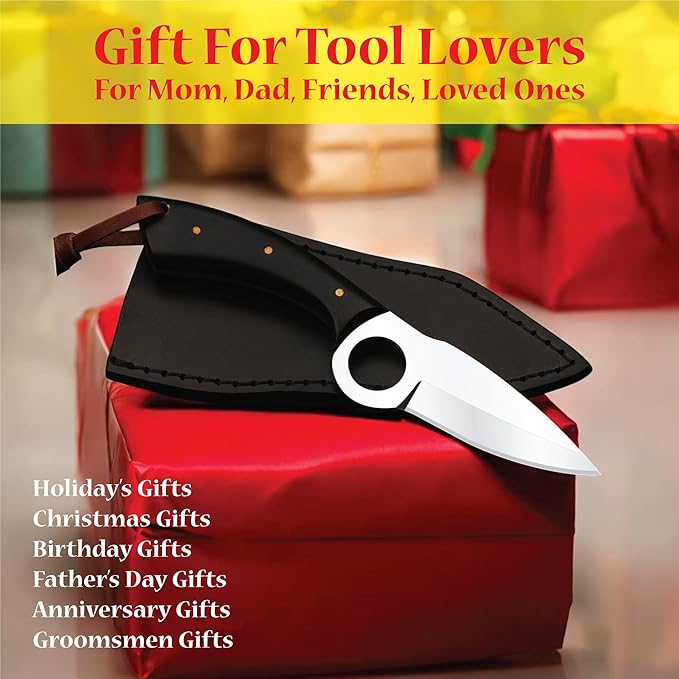 - [Handmade Crafted Knife] Its hand forged and crafted excellent. It’s a multiple purpose carry knife with a black Mecarta handle, Steel sharp edge blade and leather sheath with perfect quality.