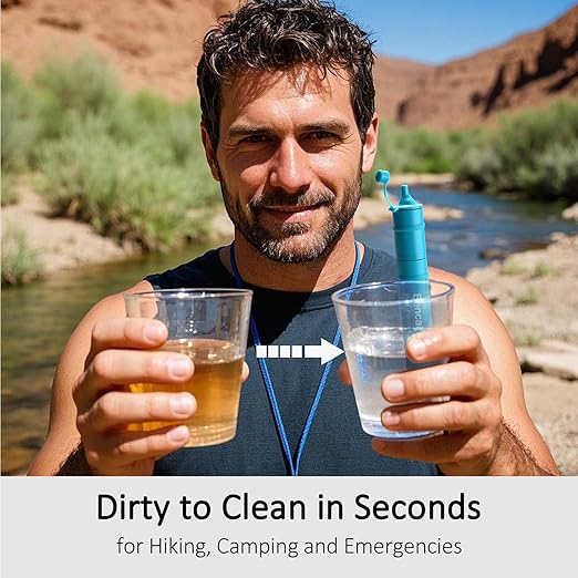 - Essential for Camping, Survival & Emergency Water Filtration: This lightweight, compact water filter straw is a must-have survival kit essential for outdoor adventures, emergency preparedness, and disaster relief. Whether you're camping, hiking, or facing a water crisis, it ensures access to clean, purified water anytime, anywhere. An ideal choice for any survivalist, prepper, or adventurer