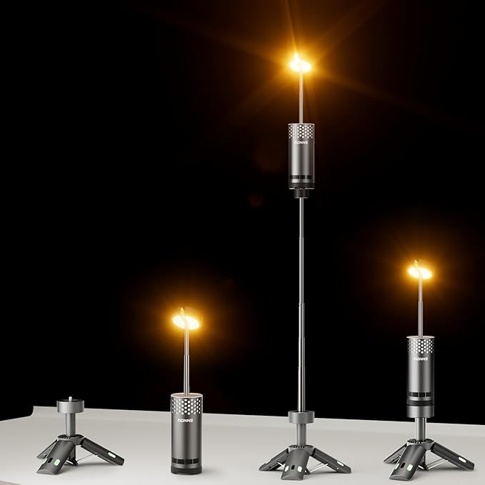 - Compact, Portable & Detachable Design--- This detachable camping light is lightweight (1.1 lbs) and compact (2 x 11.4 inches), fitting easily into any backpack or pocket. Fully extended to 37.6 inches (95.5 cm), it provides ample brightness as a telescopic camping light. The detachable light head (2 x 5.5 inches) features a magnetic base and hook, allowing secure attachment to metal surfaces or hanging. The stand (2 x 5.9 inches) ensures stable and flexible lighting, featuring a 1/4" nut for compatibility with tripods and camping gear. Whether for camping, hiking, or emergencies, this rechargeable camping lantern offers versatile, hands-free lighting for any outdoor adventure.