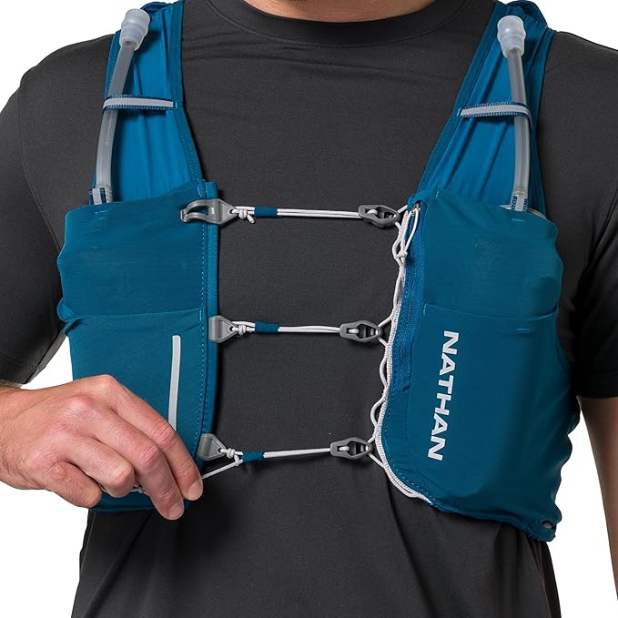 - Equipped with 2 Nathan x Hydrapak 20 oz/592 ml flasks with extended straws. Storage Capacity: 366.1 cu in/6 Liters. Weight w/o flasks: 8.2oz oz/231.4g. Weight w/ flasks: 11.9 oz/336.2g