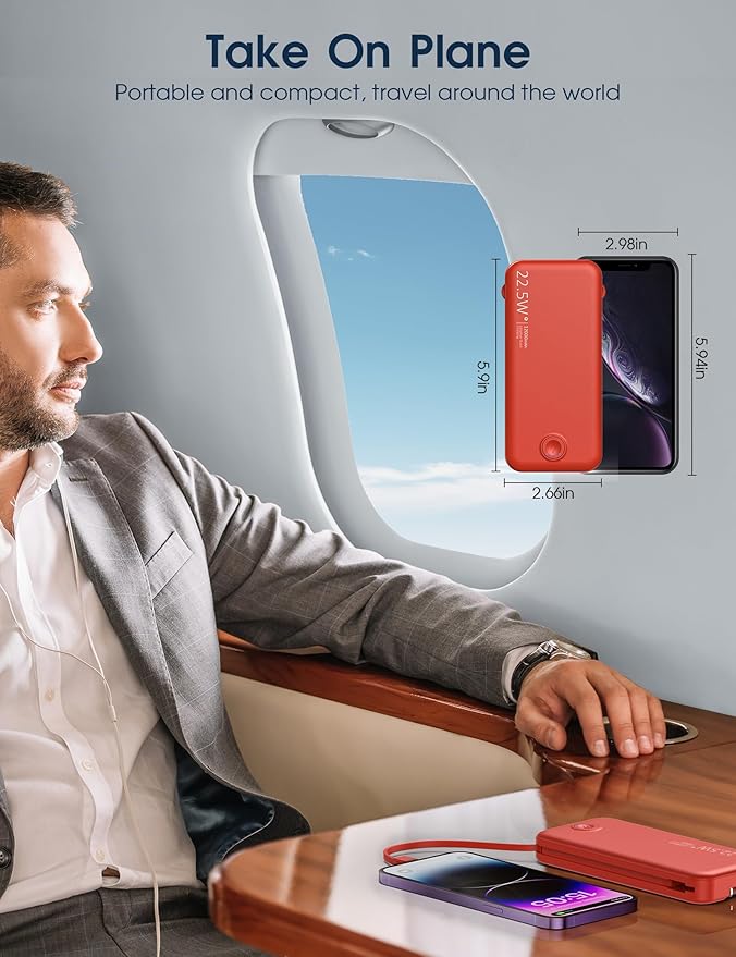 - Special Feature : Potable charger with built in cable and AC wall plug, USB C 20W, USB-A 22.5W fast charging, slim and lightweight, pocket size, camping, hiking, airplane travel necessities, LED indicator lights, over charging protection, short circuit protection, auto shut-off, scratch resistant Potable charger with built in cable and AC wall plug, USB C 20W, USB-A 22.5W fast charging, slim and lightweight, pocket size, camping, hiking, airplane travel necessities, LED indicator lights, over charging protectio… See more