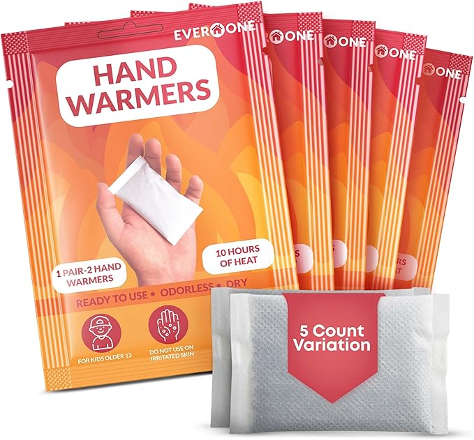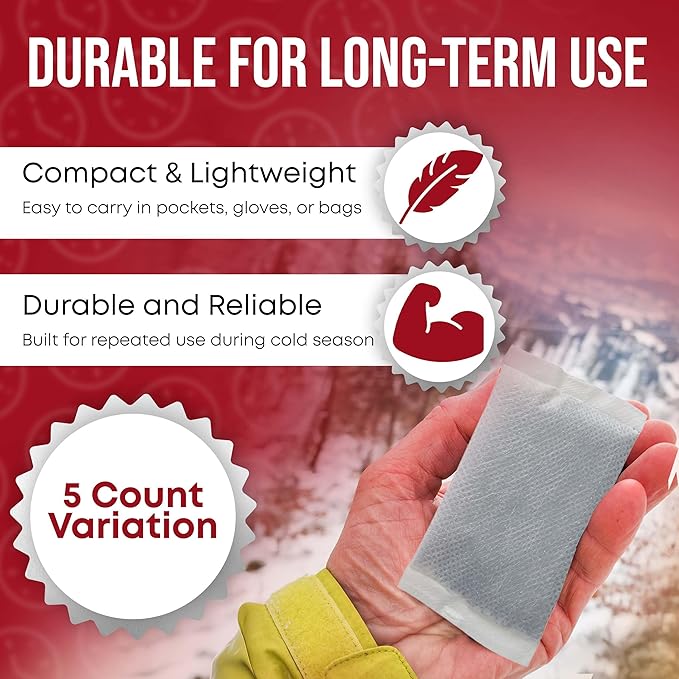 - Convenient Pack of 5 Hand Warmers: Includes 5 individual air-activated heat packs to keep your hands warm and cozy in cold weather. Perfect for outdoor activities like camping, skiing, and hiking.