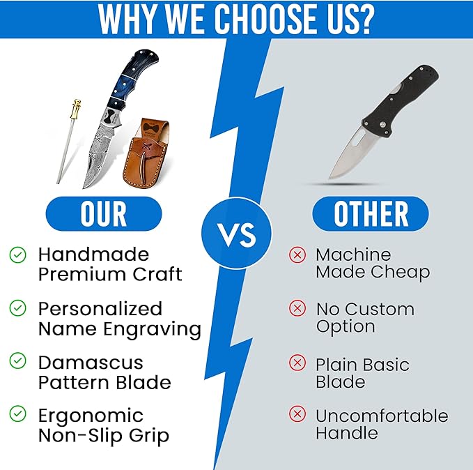 - 【Personalized Groomsmen Gift】- If you are having trouble searching for a perfect groomsmen gifts for Wedding, Bachelor Party, and Engagement, our trustworthy personalized pocket knives are designed & made by knife experts who will impress and serve your friends for years to come.