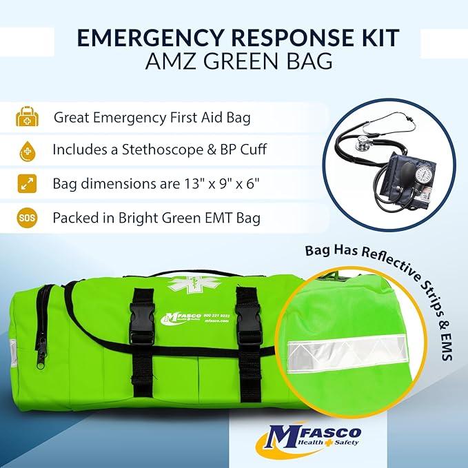 - COMPLETE EMERGENCY RESPONSE KIT - Prepare yourself for any unforeseen disaster with the MFASCO First Responder Kit. This meticulously stocked medic bag contains 415 pieces of essential medical supplies, providing you with the tools needed to handle emergencies efficiently. From natural disasters to first aid response, our first aid medical bags are your go-to solution! Assembled in USA.