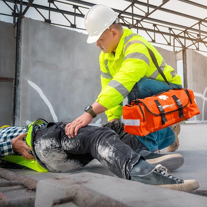- BE VISIBLE, BE SAFE - Urgency demands visibility! Our first aid kit emergency response bag is fully stocked with a reflective striping design ensure easy identification, even in low-light scenarios. The vibrant orange color further enhances visibility, making it a standout medic bag that aids prompt and efficient access to first aid supplies.
