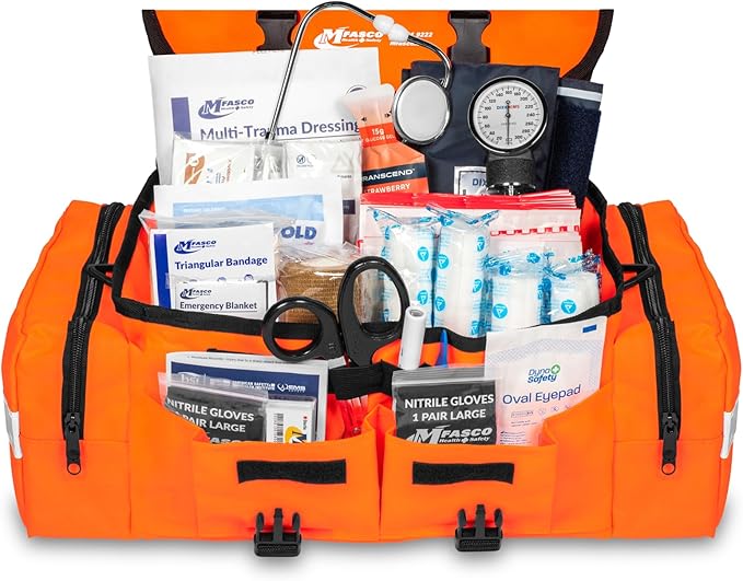 - COMPLETE EMERGENCY RESPONSE KIT - Prepare yourself for any unforeseen disaster with the MFASCO First Responder Kit. This meticulously stocked medic bag contains 415 pieces of essential medical supplies, providing you with the tools needed to handle emergencies efficiently. From natural disasters to first aid response, our first aid medical bags are your go-to solution! Assembled in USA.