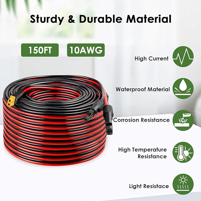 Solar to XT60 Extension Cable 10AWG 150FT Solar Connector to XT60 Adapter Cable for Solar Panel to Portable Power Station Solar Generator Battery Pack