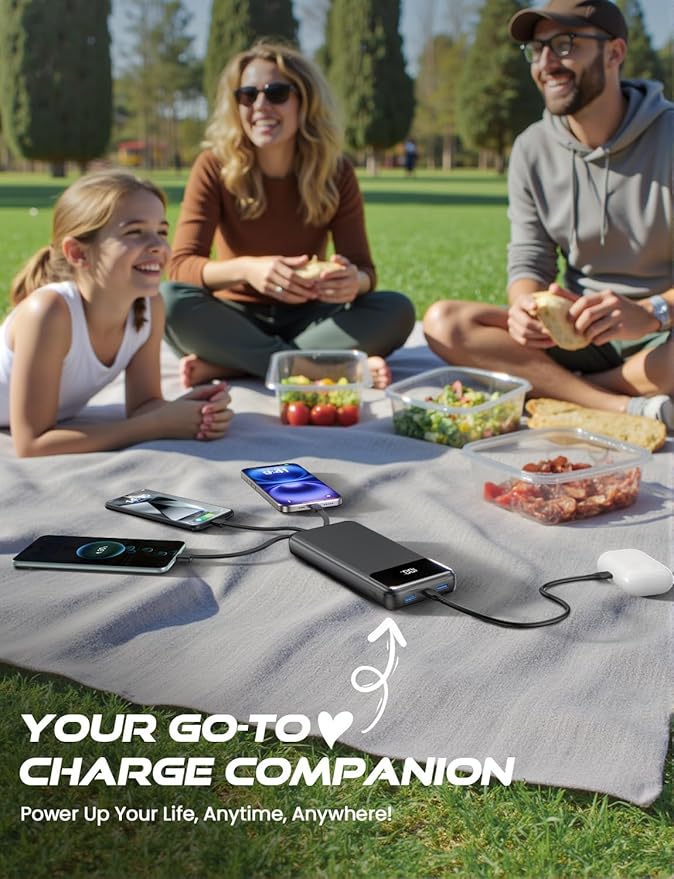 Portable Charger, 50000mAh Power Bank with Built in Cables, 22.5W Fast Charging Battery Pack, Portable Phone Charger for iPhone 17 16 15 14,iPad,Samsung,Google,PowerBank for Travel Camping Essential