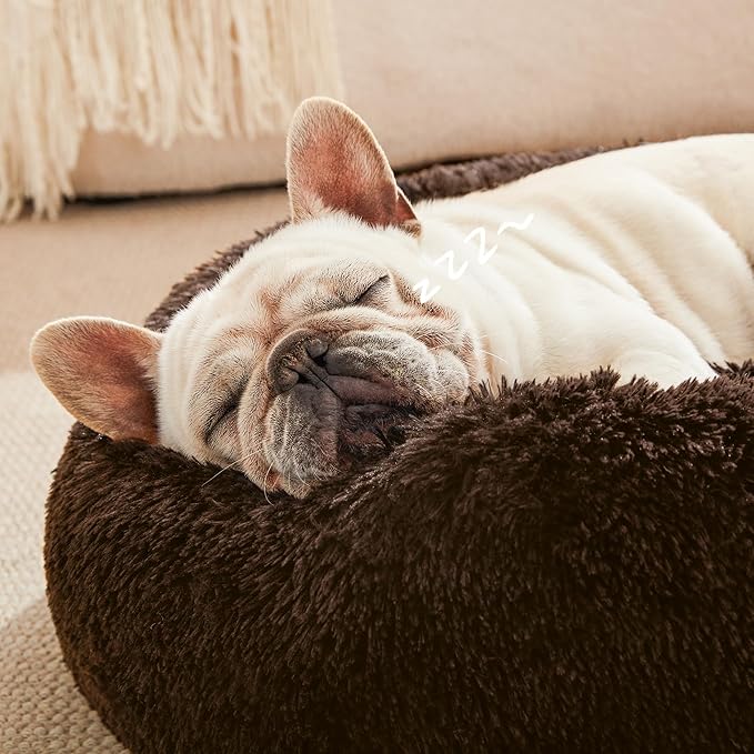 Love's cabin 20in Cat Beds for Indoor Cats - Cat Bed with Machine Washable, Waterproof Bottom - Dark Brown Fluffy Dog Pet Calming Cushion Bed for Joint-Relief and Sleep Improvement