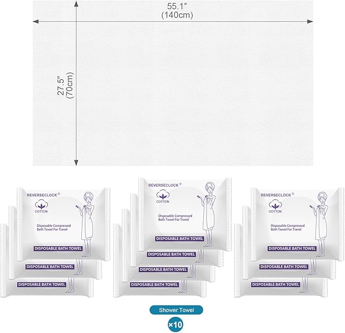 - Package Include: Totally 10 PCS disposable compressed shower towels (55.1 inches*27.5 inches / 140cm*70cm). Each towel is individually wrapped, ensuring cleanliness and making them easy to share with friends or family.