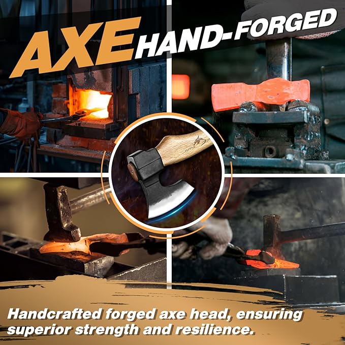 - ERGONOMIC DESIGN: Crafted with an beechwood handle, the axe is designed to reduce hand fatigue during extended use. The ergonomic shape provides a comfortable, natural grip, ensuring stability and control even during the most demanding tasks