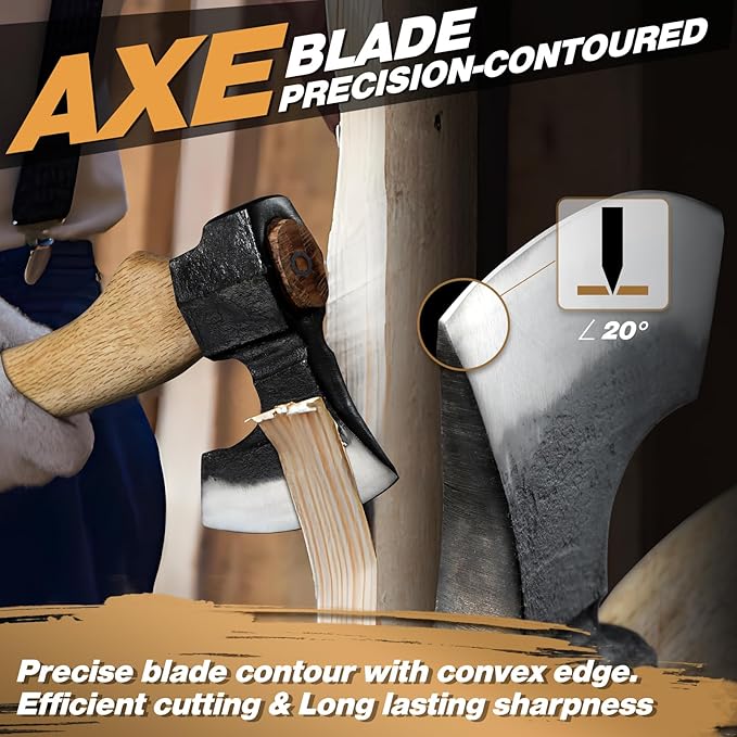 - RECISION SMALL HAND AXE: Designed with a short handle for improved precision, this axe features a 20° bevel angle and convex grind for optimal cutting performance, this axe ensures a comfortable swing for detailed tasks like splitting logs and shaping wood. Perfect for accurate outdoor woodworking with reduced effort