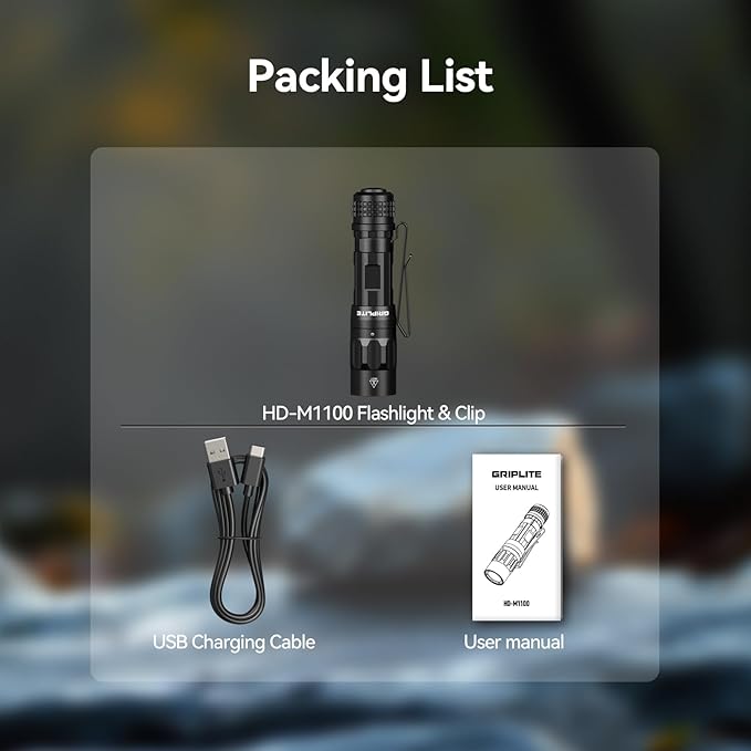 - Exceptional Visibility: The GripLite HD-M1100 EDC light unleashes an astonishing 1100 lumens of brightness, projecting a beam up to 177 meters (580 feet). Its neutral white color temperature ensures that the true colors of observed objects are faithfully reproduced, significantly enhancing your visual clarity and precision in any situation.