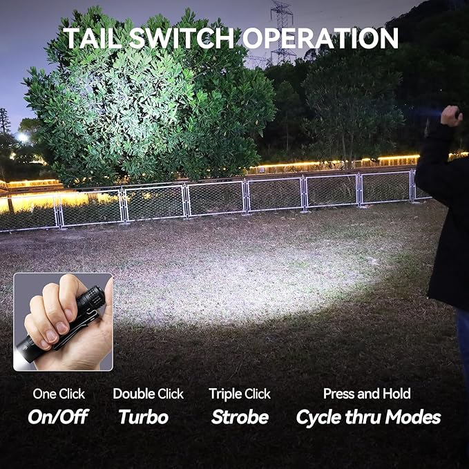 - Ultra - Portable: Measuring a mere 3.8 inches and weighing only 2.1oz, this small pocket - sized flashlight is the perfect everyday carry companion for home, outdoor camping and emergencies. With two SS body clips, it can be effortlessly attached to your cap, belt, or backpack.