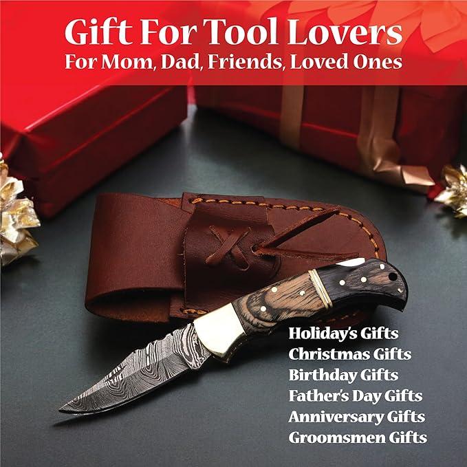 - ๐๐๐ฆ๐ฉ ๐ค๐ง๐ข๐๐ ๐ฐ๐ข๐ญ๐ก ๐๐จ๐๐ค๐๐๐๐ค ๐๐๐ฌ๐ข๐ ๐ง: The lockback mechanism in this folding Damascus pocket knife ensures the blade stays firmly in place when opened, offering enhanced safety and stability for reliable outdoor use.