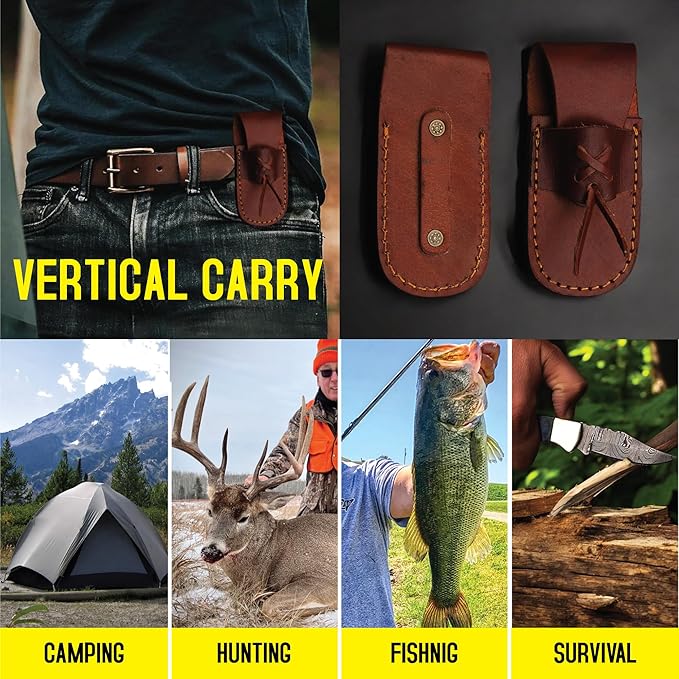- ๐๐ซ๐๐ฆ๐ข๐ฎ๐ฆ ๐๐ก๐๐๐ญ๐ก: This Damascus hunting knife, designed for EDC, comes with a handcrafted cowhide leather sheath featuring an integrated belt loop for secure and easy carrying, ensuring that your survival knife stays protected.