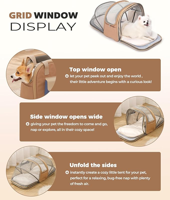 - Suitable for Small to Medium-Sized Pets: Designed for cats (e.g., Siamese, Ragdoll) and small dogs (e.g., Chihuahuas, Shih Tzus) under 25 lbs. The 32" expanded space ensures comfort for pets up to 12" tall, perfect for long trips or vet visits.