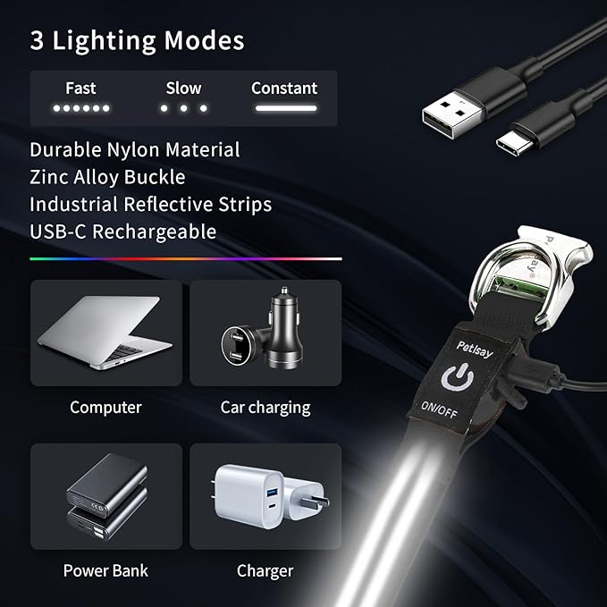 - 🔋 [8-Hour Runtime & USB Rechargeable]: No battery swaps! One charge powers up to 8 hours continuous glow – perfect for long adventures. Light up dog collars rechargeable tech saves cost vs. disposable batteries