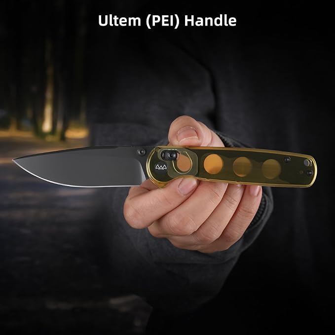 - 【Comfortable Grip】The handle of this folding knife is made of PEI and ergonomically designed to make it easier for users to grip.The yellow color of the handle makes it easier for the user to find it at night while surviving in the wild.