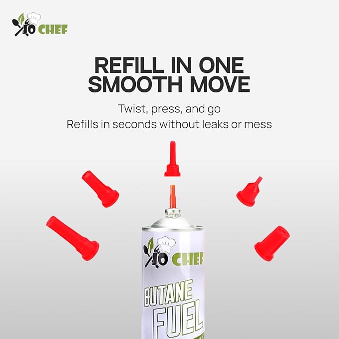 - NOZZLE ADAPTER INCLUDED – Easily attaches to any butane refill for cooking torch or cocktail smoker kit. Ensures safe, mess-free filling.