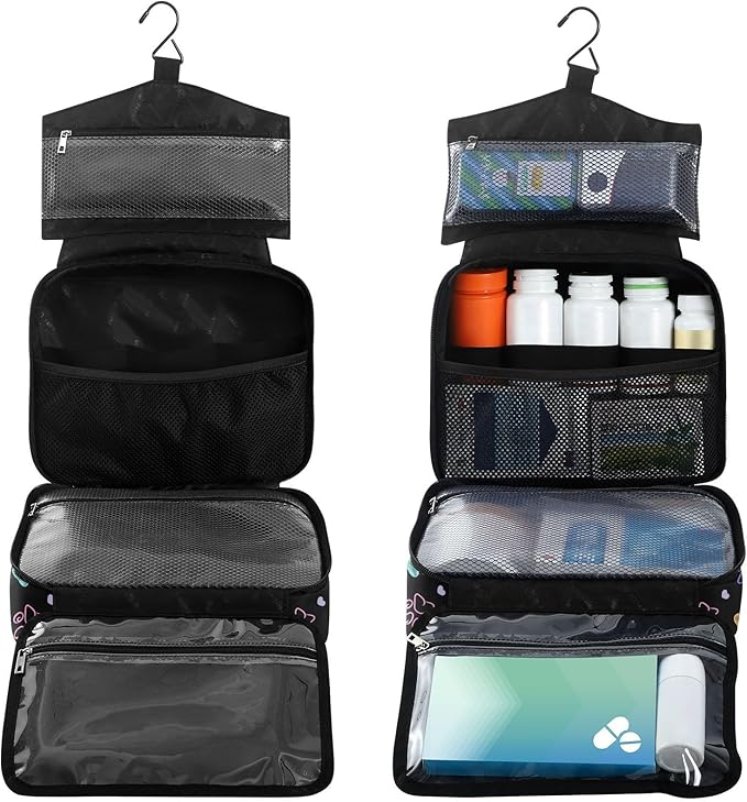 - 【Sturdy Hook Design】A hanger to hook allows you to hang the bag almost anywhere for accessibility. This not only showcases your medical supplies, toiletries, makeup products to electronic devices and charging cables but also saves valuable space.
