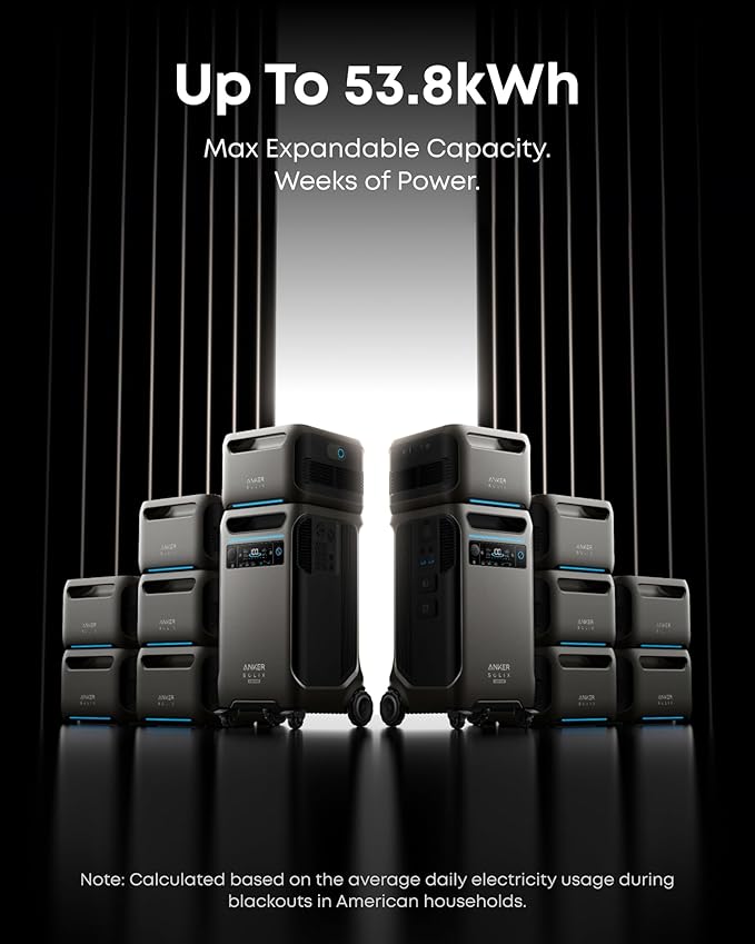 - Dual-Voltage for Any Appliance: No more limitations when you're powering your dryer. The 120V/240V and 6,000W AC output runs everything at home. For more power, add another Anker SOLIX F3800 Plus for 12,000W max AC output.