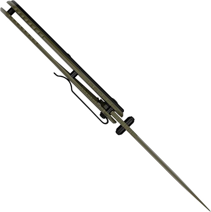 - Olive steel handle with black G10 overlay pairs with the olive PVD coating blade makes for a stylish, stealthy look - provides a solid grip and weight in hand
