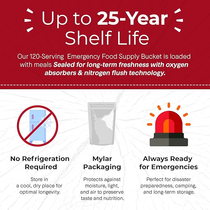 Legacy Food Storage Gluten Free 120 Serving Bucket, Emergency Food Supply, 46,200 Total Calories, 120 Large Servings, Shelf Stable Lunch & Dinner Entrees, Freeze Dried Survival Meals for MRE Camping, Hiking, & Backpacking