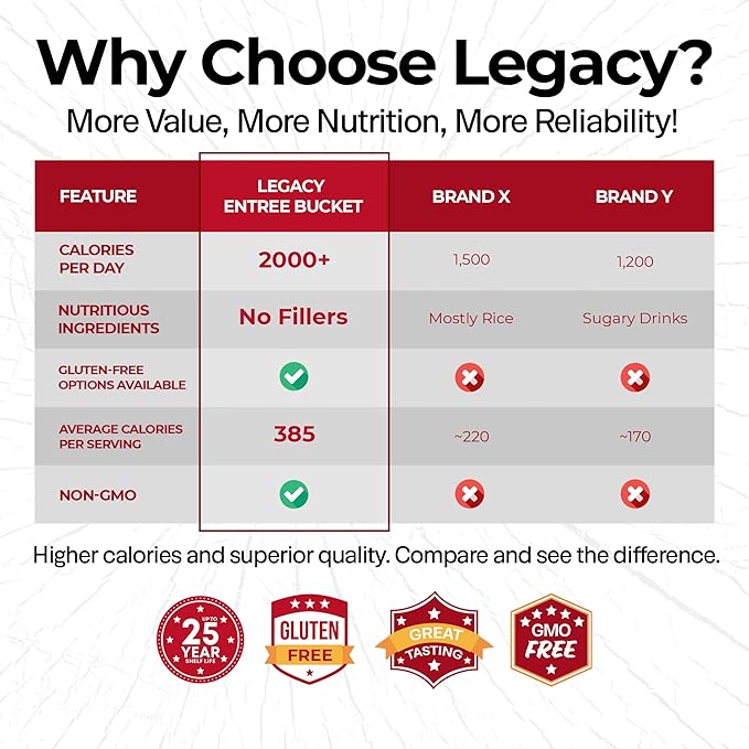 - PREMIUM INGREDIENTS, NO FILLERS – Legacy’s freeze dried dehydrated meals are made with real, quality ingredients for excellent nutrition without unnecessary fillers.