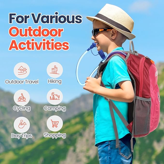 - Wide Range of Applications: this compact children's hiking hydration backpack is lightweight and stable, making children feel relaxed and happy during outdoor activities, such as cycling, camping, running, jogging, climbing, walking and hiking