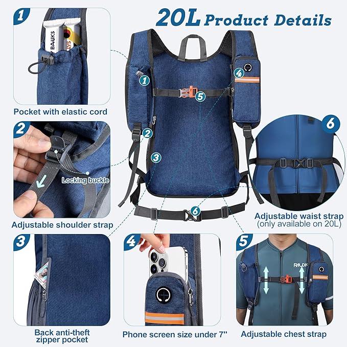- Organized Multi-Pocket Design: With a capacity of 20L, this lightweight backpack for travel features several compartments, including a front elastic mesh pocket, a front zippered pocket, 2 water bottle holder, and a rear anti-theft zippered pocket, keeping your essentials organized and accessible.