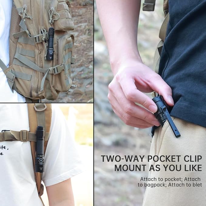 - DESIGNED FOR EDC - Take the TD05 tactical flashlight anywhere with a steel pocket clip that can be attached to backpacks, belts, and MOLLE systems for easy access, or use the included or lanyard for everyday carry.