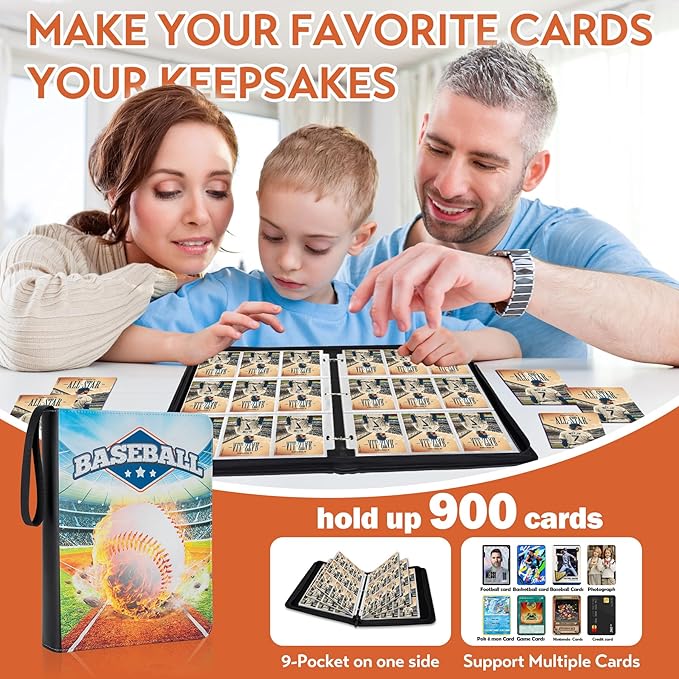 - Large Capacity:This Trading Card Binder with 50 Double Sided Pages,9 pocket per page,holds up to 900 cards.Provides plenty of space to keep all your cards organized,not disorganized