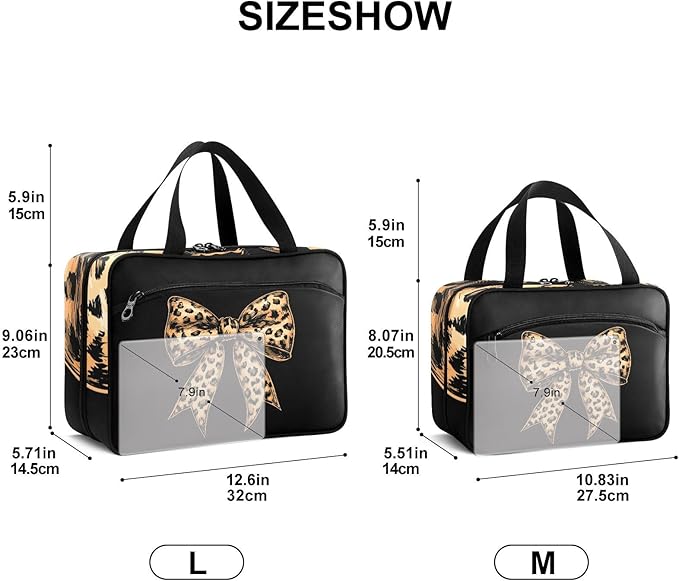Fustylead Brown Bow Tie with Leopard Skin Travel Medicine Storage Bag Large Household Pill Bottle Organizer with Zipper for First Aid, Pills, Vitamins, Medical Supplies