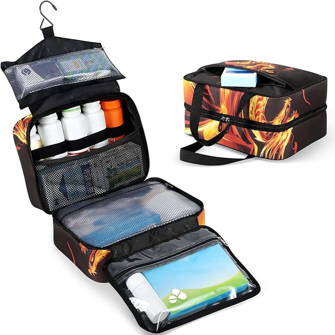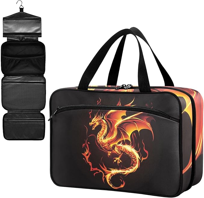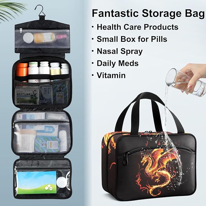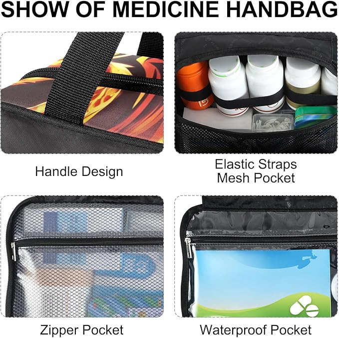 Fustylead Fire Western Dragon Empty Travel First Aid Bag Large Home Medication Bag with Zipper for Pills,Vitamin,Fish Oil,Supplements for Women and Men