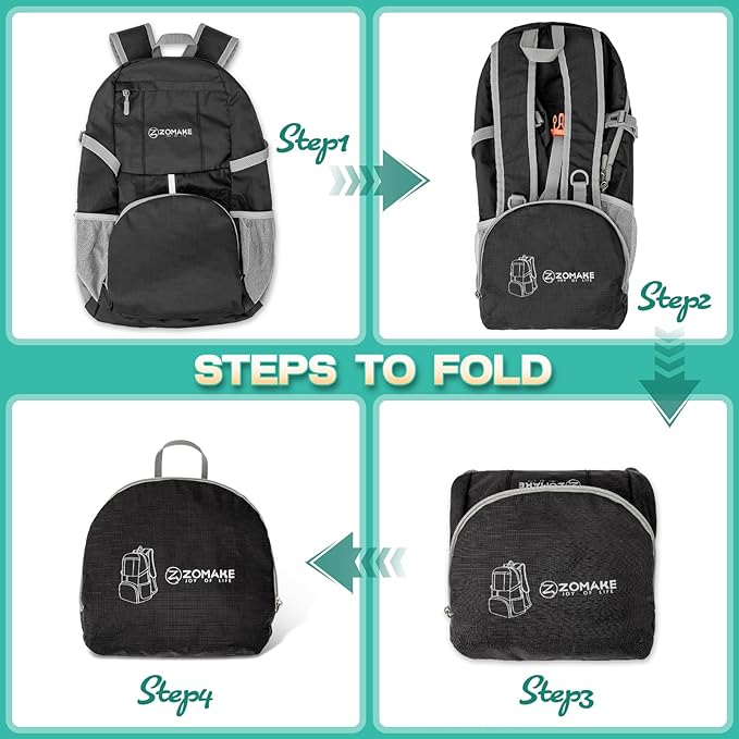 - Quality Lightweight Foldable Backpack: Our travel backpack packable use nylon materials for water resistance and tear resistance (note:≠completely waterproof).We use double-layered wear-resistant new processes to strengthen the suture of the travel foldable backpack,and make durable light folding backpacks.A zipper made of two-way SBS metal and high-quality resin materials to avoid stuck in the zipper.The smooth zipper can give you a good sense of experience