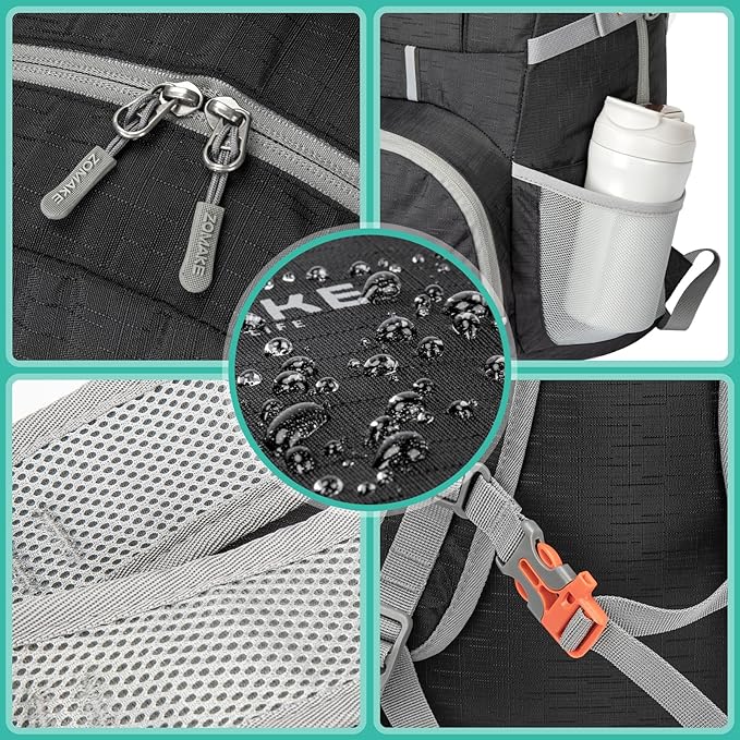ZOMAKE Lightweight Packable Backpack 35L, Light Foldable Backpacks Water Resistant Collapsible Hiking Bag, Compact Folding Day Pack for Travel Camping(Graphite black)