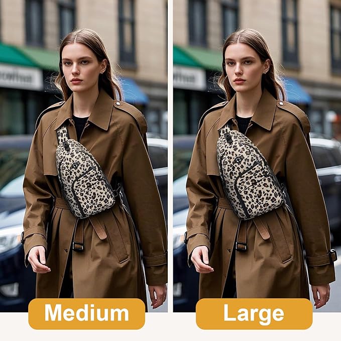 Large Leopard Waterproof Sling Bag Backpack with Adjustable Shoulder Strap for Women Men, Hiking Daypack with Multi-Pocket System and Comfortable Mesh Back Panel