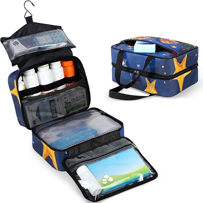 - 【Sturdy Hook Design】A hanger to hook allows you to hang the bag almost anywhere for accessibility. This not only showcases your medical supplies, toiletries, makeup products to electronic devices and charging cables but also saves valuable space.