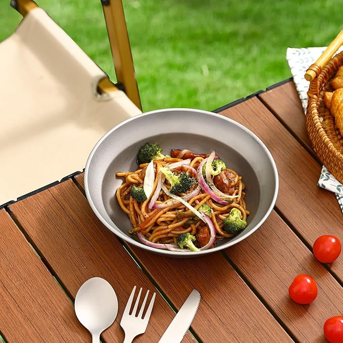 - Compact design:These pure titanium bowls are smooth circles with a top diameter of 7.2 inches, a height of 1.89 inches, and a weight of 2.89 ounces. They are lightweight, stackable, and do not take up too much space.