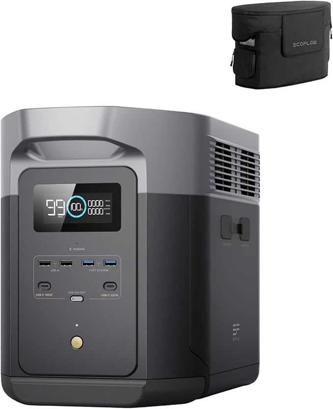 EF ECOFLOW Portable Power Station DELTA 2 Max with Protective Cover, 2400W LFP Solar Generator, Full Charge in 1 Hr, 2048Wh Solar Powered Generator for Home Backup