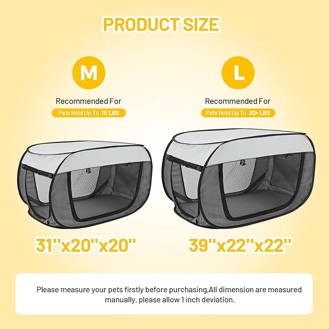 - Quick & Easy Setup: This soft-sided dog crate requires no tools—simply unfold it in seconds. When not in use, it folds compactly into the included carry bag, making storage and transportation a breeze.