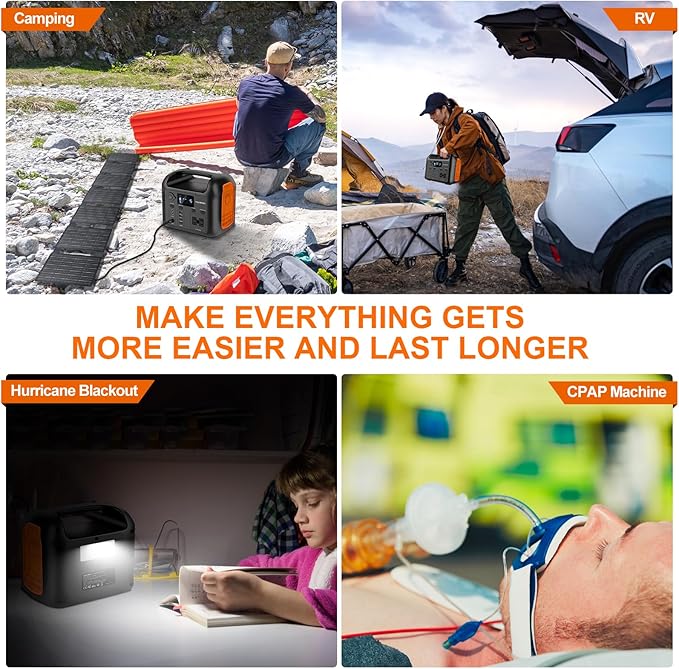 - 【High Function and Safety】 Equipped with LiPO4 batteries, more thermal and chemical stability, which improves battery safety. Portable power station offers 2000 cycles and more than 10 years using time. It can safeguard you and your devices by over-voltage protection, over-current and over-temperature protection.