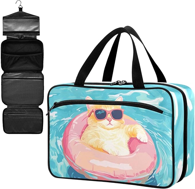 Fustylead Leisurely Cat with Sunglasses in The Pool Empty Travel First Aid Bag Large Home Medication Bag with Zipper for Pills,Vitamin,Fish Oil,Supplements for Women and Men